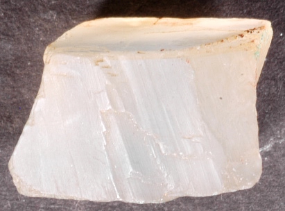 写真1 青味掛かった重晶石。縦1㎝、横3~4mm。板状の形をしている。