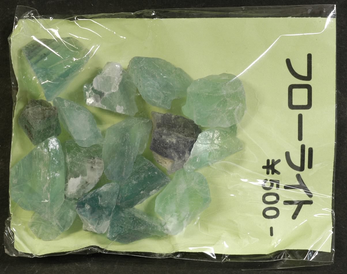 写真2 1パック500円の蛍石。平均して、一辺1.5㎝ほどの蛍石が20個弱入っている。